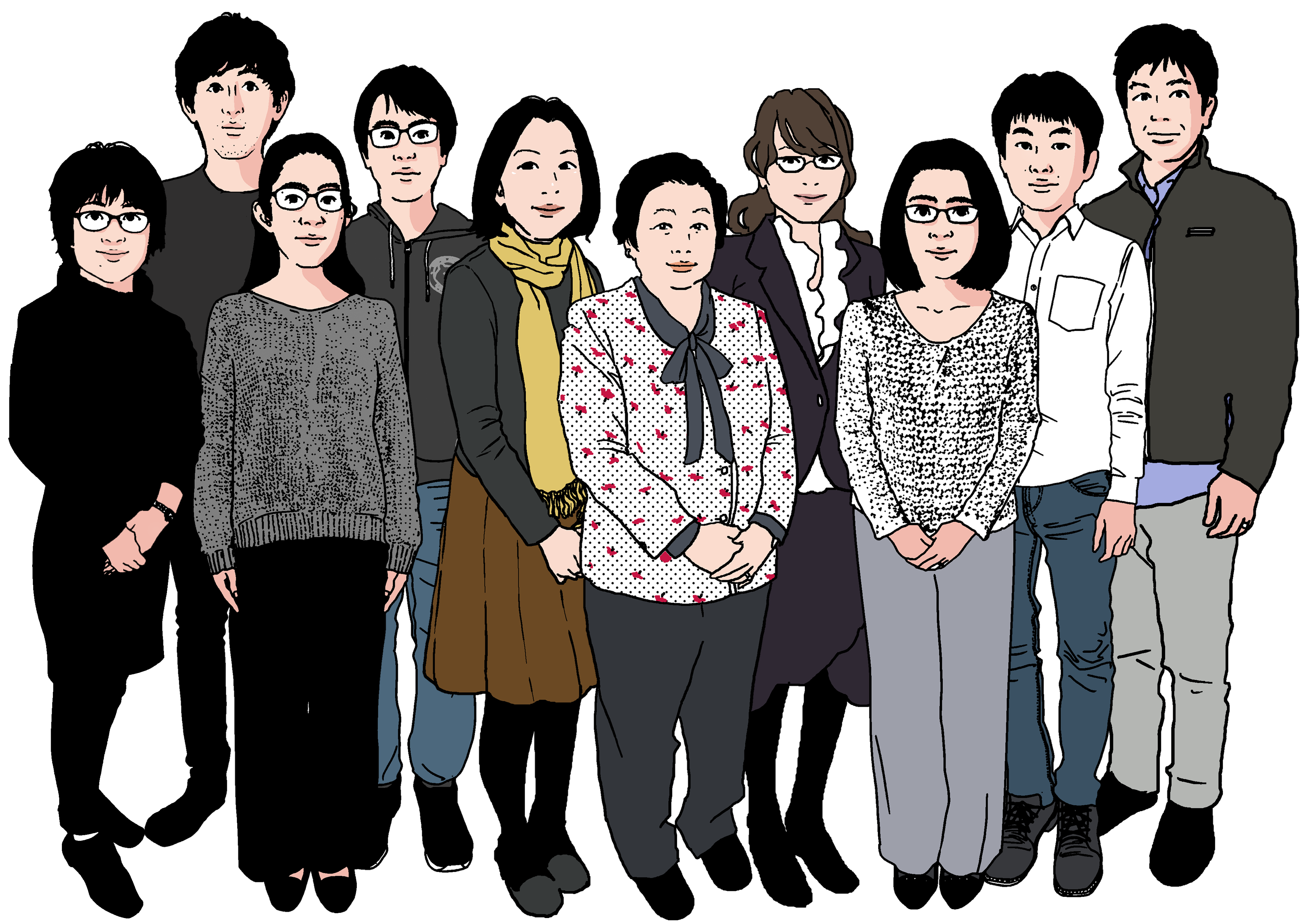 役員:3名 顧問:1名 社員:9名 アルバイト(大学院生・大学生):6名